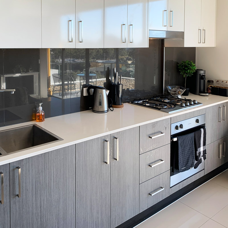 - Bench tops cleaned inside and outside, on top of all cupboards, in draws and doors.
